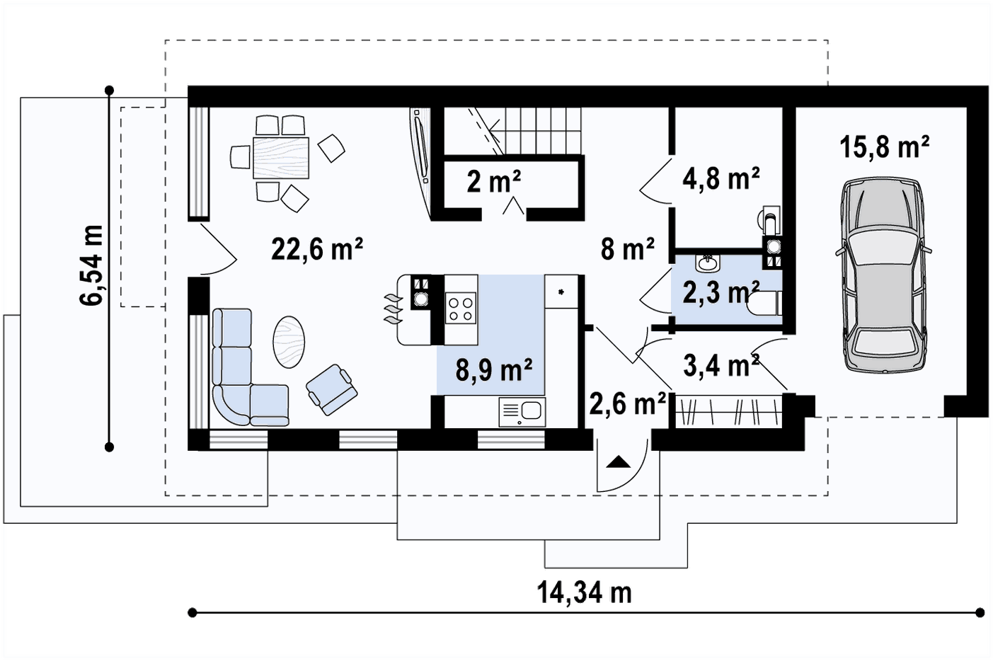 Dzięki funkcjonalnie zaprojektowanym pomieszczeniom, z łatwością zagospodarujesz dostępne miejsce. Żaden element nie będzie zakłócał przestrzeni. W domu możesz liczyć na dużą ilość naturalnego światła dzięki przeszklonym ścianom oraz oknom dachowym. Zapewnij sobie komfortowe życie z dala od zgiełku w miejscu doskonale skomunikowanym z Trójmiastem!